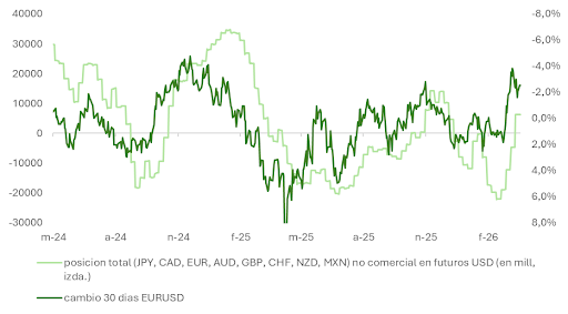 However, the appreciation has fully erased the premium the market had assigned to EUR/USD following the tariff announcements on Liberation Day, although uncertainty around Trump’s trade policy remains high. Long-term models point to a somewhat overvalued dollar, and speculative investors have already closed their short positions on the greenback. Additionally, the market has shifted from expecting fed funds to end 2026 at 3% to seeing them anchored at 3.75%. The announcement of a truce would force a rapid reassessment of these expectations.