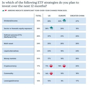 Following iShares’ lead is the European firm Amundi. Europe’s largest asset manager climbed the ranking again after adopting an offensive strategy in low-cost core products and in its retail offering, while also outlining a plan to establish a meaningful presence in the European active ETF and white-label segments. “The launch of its low-fee core range and the expansion of its well-established synthetic replication platform supported $33.9 billion in equity ETF inflows, alongside demand for its well-positioned country-sector strategies, including its European banks product. The firm also recorded $16.9 billion in fixed income strategies, led by strong investment in exposures such as short-duration euro corporate debt,” the report states.