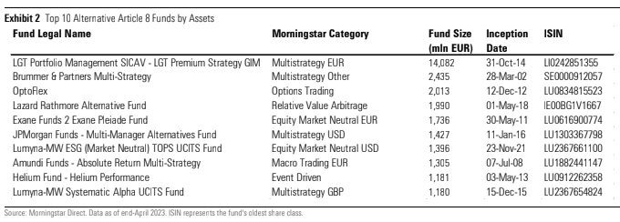 El estudio de Morningstar establece que los fondos alternativos líquidos (o «lite hedge funds») no sólo suelen ser complejos, sino también amplios. Algunas estrategias alternativas pretenden preservar el capital e invertir en valores individuales de una única clase de activos. Otros buscan altos rendimientos asumiendo grandes riesgos mediante el uso de derivados e invierten en todo el espectro de clases de activos. Al ser tan diversas, las estrategias alternativas difieren mucho en cómo integran los factores ASG en sus procesos de inversión.