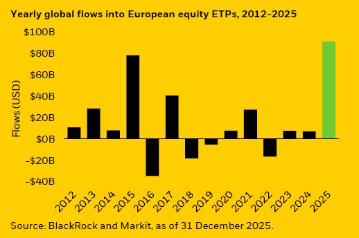 Los inversores de EMEA fueron el principal motor de las compras en 2025, mostrando una convicción mayor hacia la renta variable europea