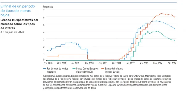 Estos materiales reflejan el análisis y las opiniones de los autores en las fechas de publicación indicadas, y pueden diferir de las opiniones de otros gestores de carteras, equipos de inversión o plataformas de Franklin Templeton Investments. Su finalidad es satisfacer el interés general únicamente, por lo que no deberá interpretarse como un asesoramiento de inversión individual ni como una recomendación o invitación para comprar, vender o mantener valor alguno o adoptar cualquier estrategia de inversión. Tampoco constituye asesoramiento jurídico ni tributario.
