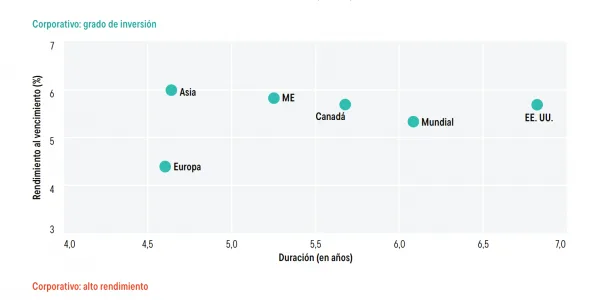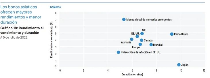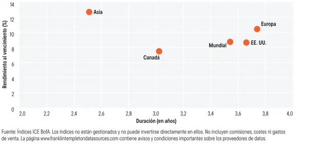 Los mercados de Estados Unidos y Europa ofrecen una duración elevada en comparación con los mercados de Asia. Los valores respaldados por hipotecas y los valores respaldados por activos también están ofreciendo mayores rendimientos, lo que brinda atractivas oportunidades de inversión, especialmente en Estados Unidos.