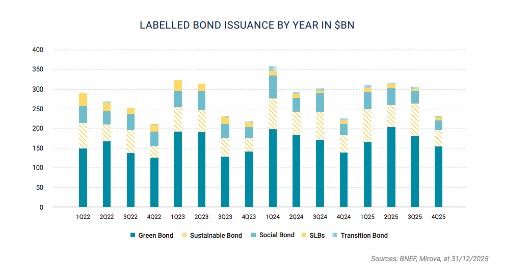 La inversión sostenible ha pasado de una gran popularidad a un segundo plano. Sin embargo, los activos sostenibles no han traslado su crecimiento a ese “segundo plano”. Es el caso de los bonos etiquetados como sostenibles. De hecho, en 2025 se confirmó que el mercado de deuda etiquetada (labelled) se está consolidando: la emisión cerró el año en torno a un 6% por encima de 2024.