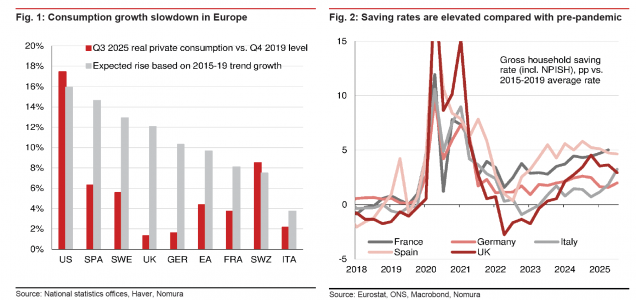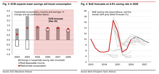 La reciente pandemia mundial, las tensiones geopolíticas y la incertidumbre económica han contribuido al aumento de los ahorros preventivos en Europa. Los tipos de interés más altos que antes de la pandemia (y en el extremo superior de la neutralidad en el Reino Unido) también están fomentando el ahorro. Sin embargo, los tipos de interés han bajado desde sus máximos posteriores a la COVID-19 y, no obstante, las tasas de ahorro se han mantenido elevadas, y eso tiene su impacto en el consumo y en el crecimiento. Por lo tanto, ¿qué están haciendo los hogares con el dinero que no gastan?, se pregunta un reciente estudio de Nomura Global Markets Reseach.