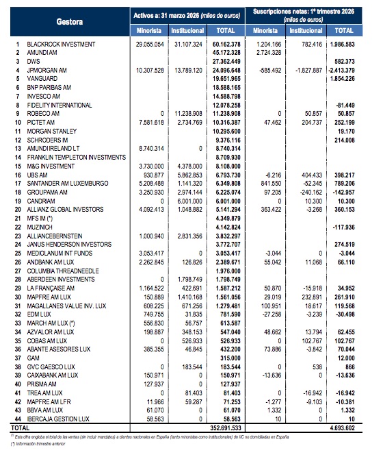 En el primer trimestre de 2026, ayudaron tanto los mercados como los flujos, pese a la guerra en Oriente Medio: en total, se registraron suscripciones netas de 6.000 millones.