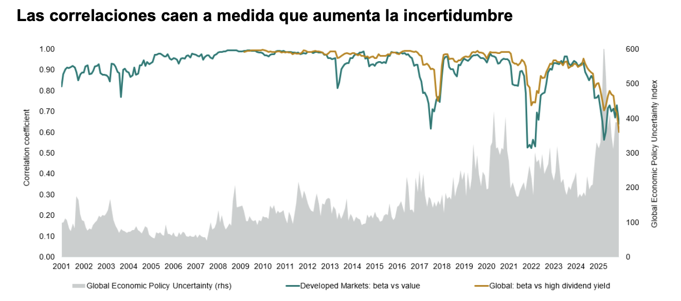 A medida que la brecha de crecimiento entre EE. UU. y Europa comienza a estrecharse —con expectativas de crecimiento del PIB real que apuntan a una convergencia para 2027—, se refuerza el argumento a favor de la diversificación geográfica. Estamos viendo las primeras señales de un cambio de régimen, en el que el mercado empieza a penalizar las apuestas excesivamente concentradas y con valoraciones elevadas, y a premiar a las compañías con márgenes sostenibles y puntos de entrada atractivos. Las empresas de pequeña capitalización, que suelen ser más sensibles a las mejoras en la economía local, suelen ser también las primeras en liderar la recuperación.