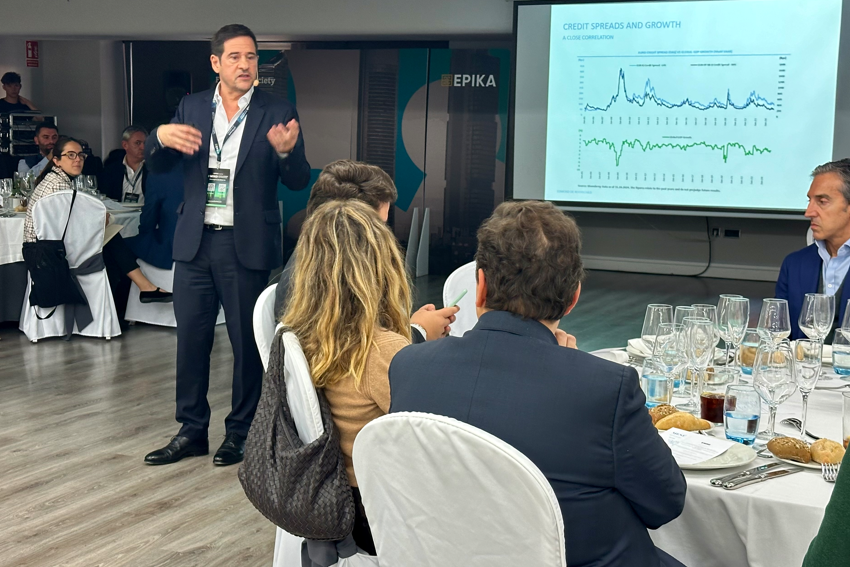 La firma encargada de romper el hielo durante el almuerzo fue Edmond de Rothschild AM, que estuvo representada por Alain Krief, director de renta fija de la entidad. A modo de introducción, el experto explicó que una parte central para fijar las previsiones para el crédito de su firma de cara al año que viene pasa por el análisis de la trayectoria de la inflación y de los tipos de interés. En concreto, el experto dibujó un escenario de divergencias entre Europa y Estados Unidos por primera vez en años: mientras que anticipa que la inflación continuará con su senda descendente en la zona euro y que el BCE profundizará en su ciclo de recortes de los tipos de interés, indicó que “no es tan seguro” que se vean las mismas tendencias en EE.UU., región para la que augura un escenario de crecimiento e inflación al alza que podría obligar a la Reserva Federal a consolidar el escenario “higher for longer” en EE.UU.