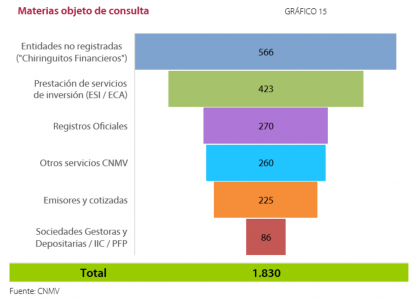 Las consultas relacionadas con las pérdidas por los inversores por desembolsos realizados a través de entidades no registradas o “chiringuitos financieros” representaron un 31% del total.