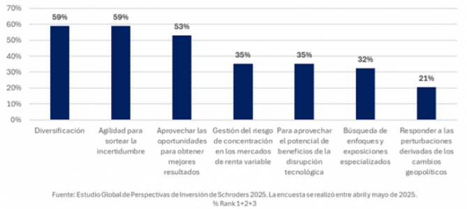 Mientras las condiciones macroeconómicas actuales se mantengan, los mercados de renta variable podrían continuar al alza, especialmente al enfocarse más en las estimaciones para 2026, lo que ayudaría a aliviar la presión sobre las valoraciones actuales. De hecho, las valoraciones, medidas por el ratio precio-beneficio (PER), parecen más razonables al considerar las perspectivas del próximo año en comparación con las cifras actuales de 2025.