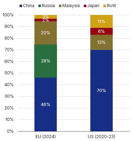 Según las previsiones de Scope Ratings, la evolución geopolítica seguirá siendo fundamental para los perfiles crediticios soberanos, especialmente en Europa. Esto tiene en cuenta las incertidumbres derivadas de la volatilidad de la política comercial y exterior de Estados Unidos, pero también el dominio de China sobre materias primas clave para las cadenas de suministro mundiales, así como el impacto de su creciente competitividad en las exportaciones de bienes de alto valor.