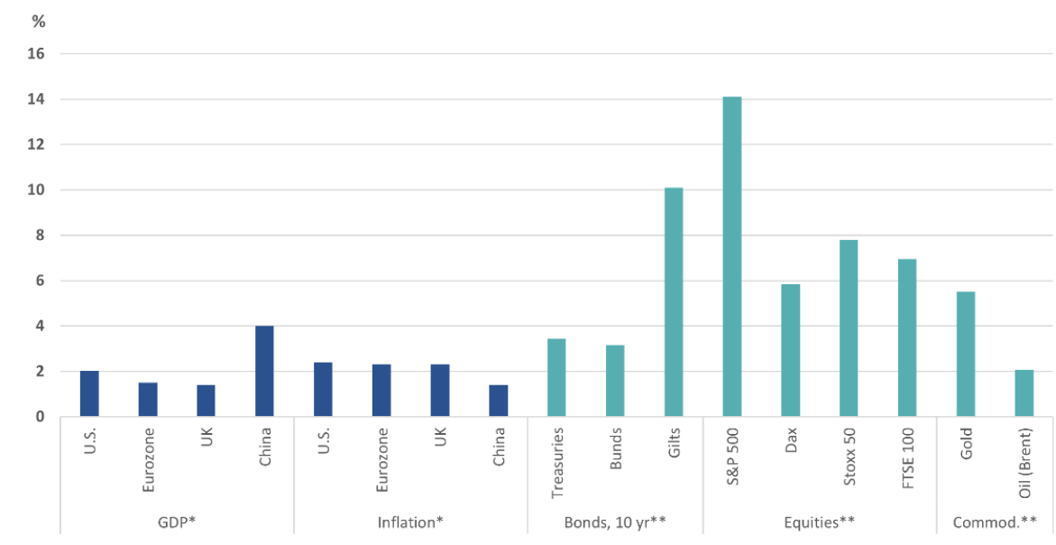 Gráfico. Producto Interior Bruto (PIB), inflación y previsiones de rentabilidad total