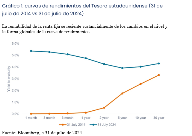 No solo es importante la forma actual de la curva de rendimientos, también los cambios previstos en la curva debido a los cambios en los tipos de interés son una consideración clave para los inversores.