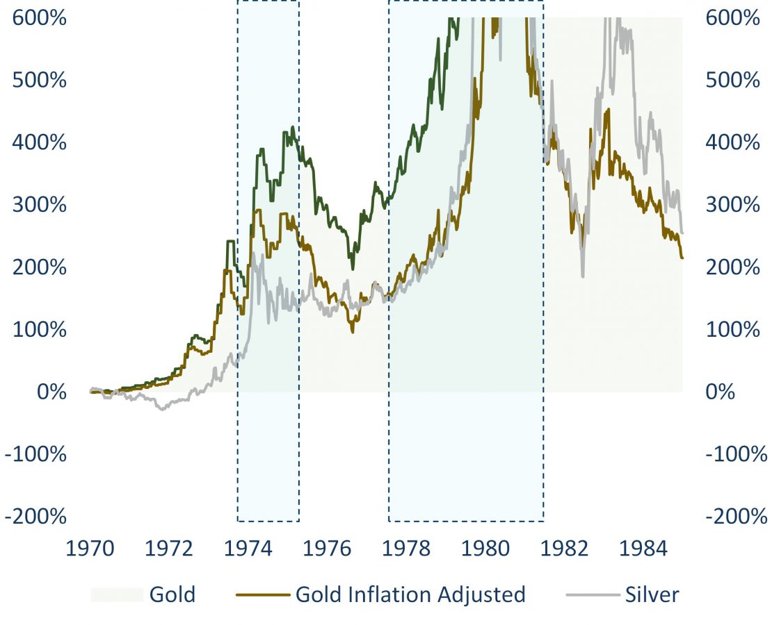 La historia ofrece ejemplos reiterados. En la década de 1970, el oro se revalorizó casi 24 veces a medida que la inflación, la inestabilidad monetaria y las tensiones geopolíticas transformaban el comportamiento de los inversores, para después caer aproximadamente un 65 % en los cuatro años siguientes, una vez que la inflación fue controlada y se restauró la credibilidad de la política monetaria. La magnitud de aquella subida superó ampliamente lo que podía explicarse únicamente por la inflación, reflejando un periodo en el que la demanda de protección llevó los precios muy por encima de su justificación fundamental. Tras la crisis financiera global, se produjo una dinámica similar: el oro avanzó en torno a un 170 % entre 2008 y su máximo de 2011, a medida que se intensificaban los temores sobre la fragilidad del sistema y la depreciación monetaria, seguido de una caída de alrededor del 45 % durante los cuatro años posteriores, cuando el crecimiento se estabilizó y regresó el apetito por el riesgo. En ambos episodios, el papel del oro pasó de ser una cobertura de cartera a convertirse en una expresión ampliamente compartida del miedo macroeconómico.