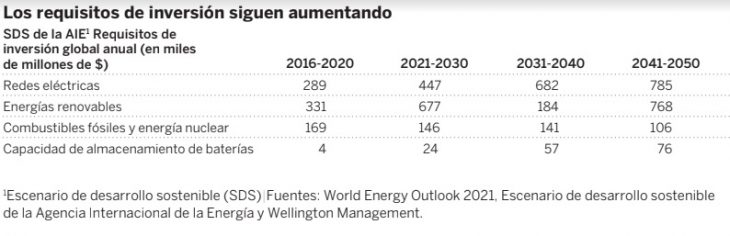 Fuente: World Energy Outlook 2021, Escenario de desarrollo sostenible de la Agencia Internacional de Energía y Wellington Management. Todos los datos están en miles de millones de dólares.